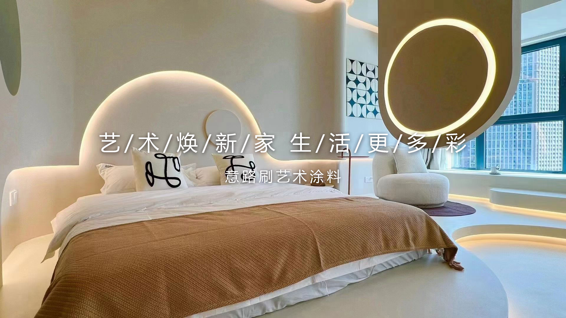 使用意路刷艺术涂料的墙面后形成整张漆膜.,整体性强效果好,无翘边现象,而且质感效果比墙纸强,可以个性定制,让我们的家更具美观度。